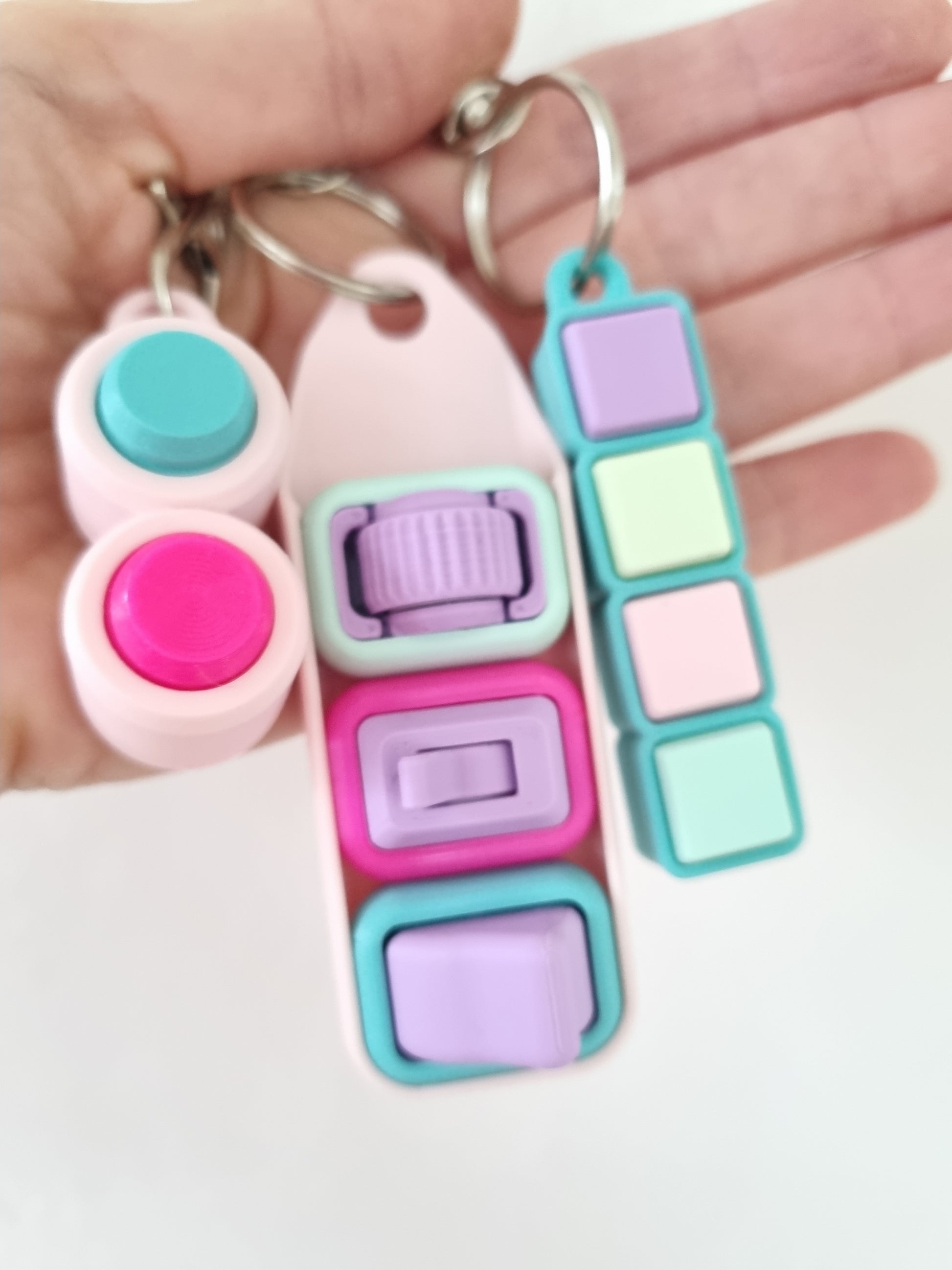 The fidgets come in a range of colours - pastel lilac, candy pink, pistachio, green, hot pink and teal - no other colour options available for this sale.