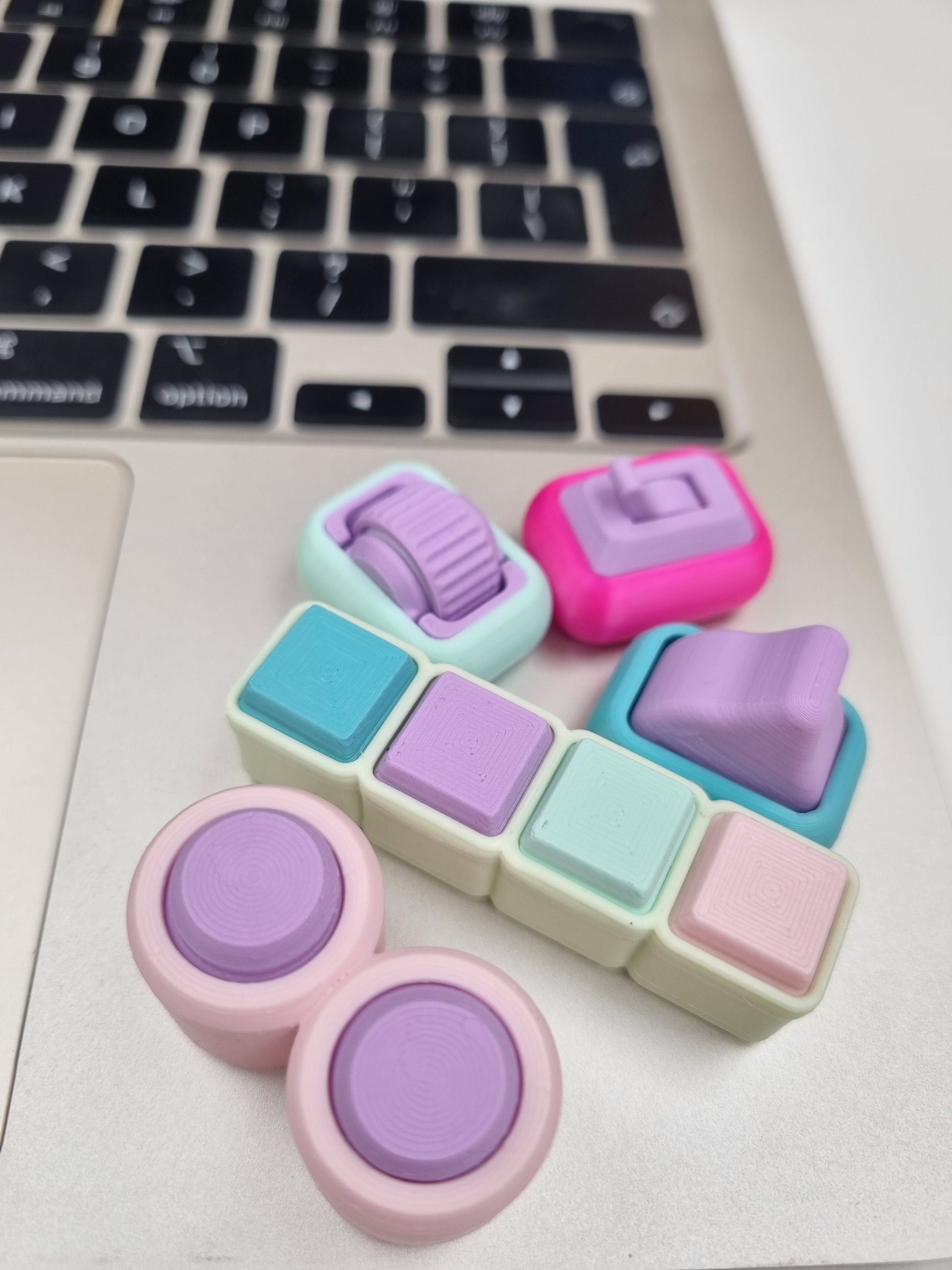 The fidgets come in the following colour scheme - pastel lilac, candy pink, pistachio, green, hot pink and teal - no other colour options available for this sale.