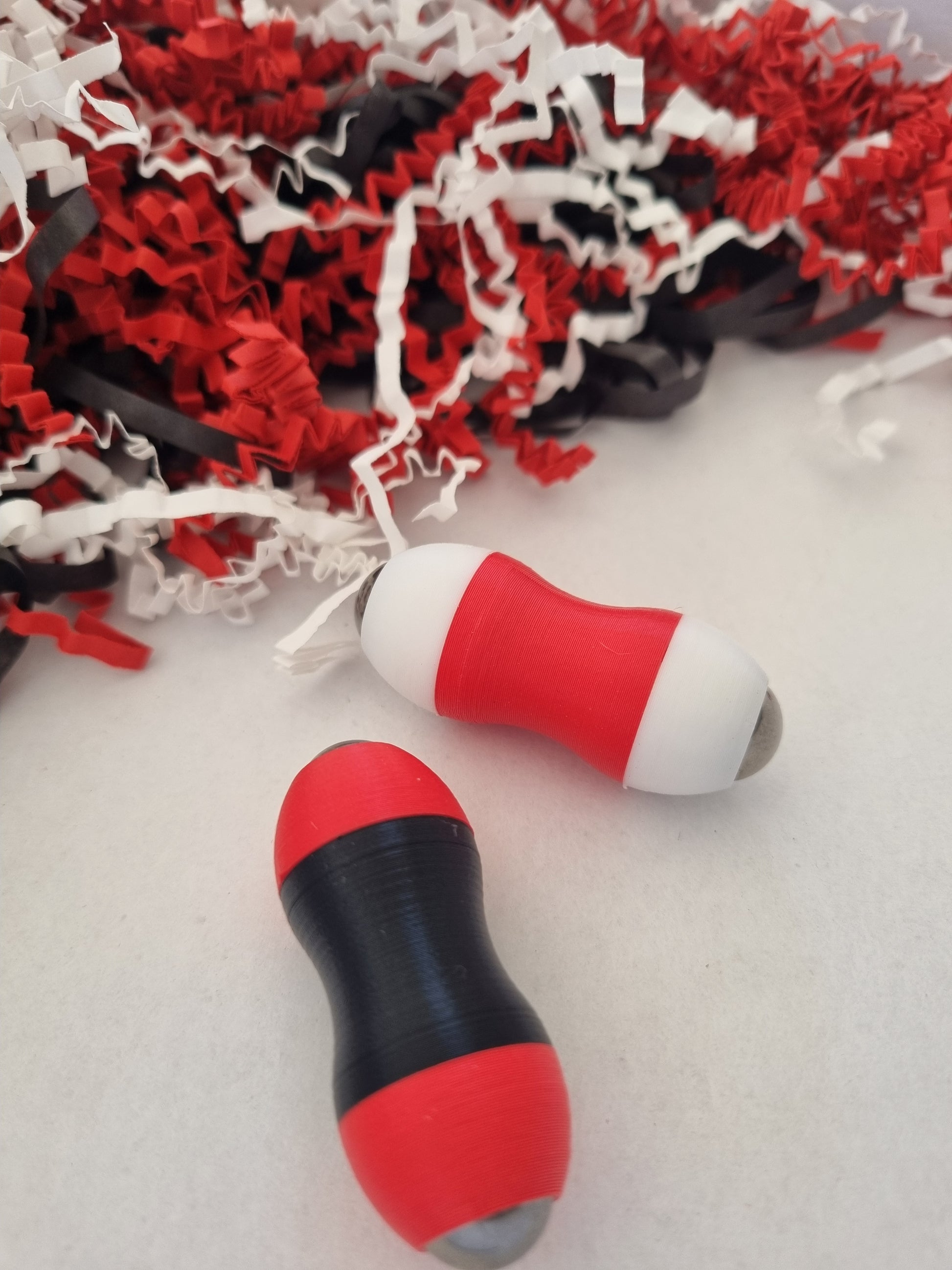 The Roller Pod is a double ended roller ball fidget. It is smooth, silent and calming.