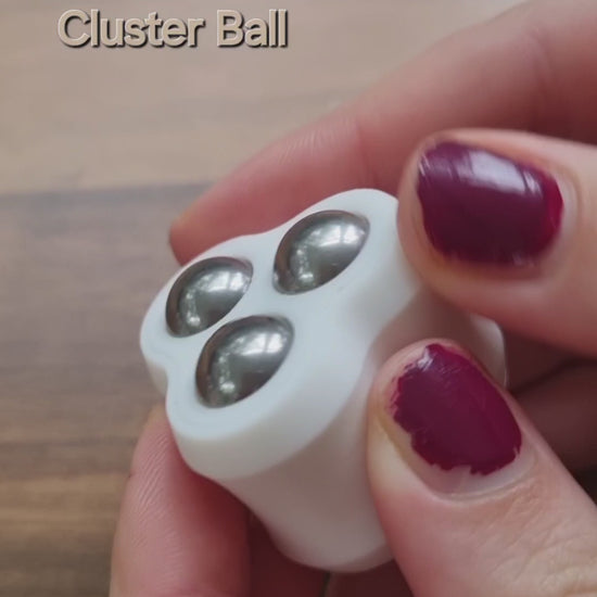 You can get your clicky roller ball as a single or in a cluster. The single is super dinky and discrete. The cluster fits perfectly between the thumb and index finger and is also small enough to hold discretely in palm of hand.